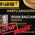 Stop Press! Keanggotaan Bernama Irvan Bastian di Tim 9 Jejak Kasus Resmi DihentikanNasional|March 15, 2026by Joker Merah Provinsi Bangka Belitung PANGKALPINANG — Tim 9 Jejak Kasus secara resmi