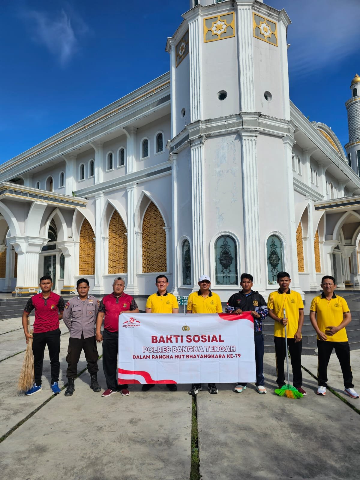 Joker – Merah.com – BANGKA TENGAH Dalam rangka menyambut Hari Ulang Tahun (HUT) Bhayangkara ke-79, Polres Bangka Tengah bersama Polsek jajaran menggelar kegiatan bakti sosial serentak di berbagai tempat ibadah di wilayah Kecamatan Koba, Kabupaten Bangka Tengah, Kamis (20/6/2025).